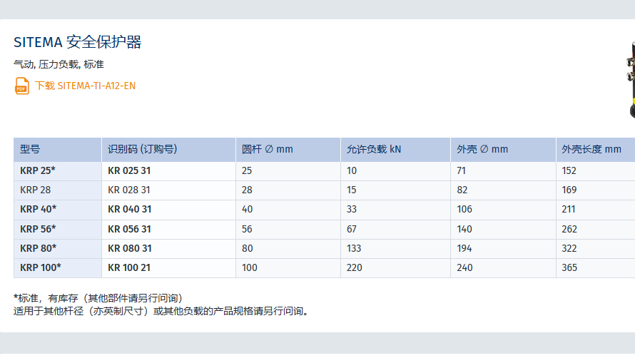 SITEMA气动安全保护器KRP 100参数