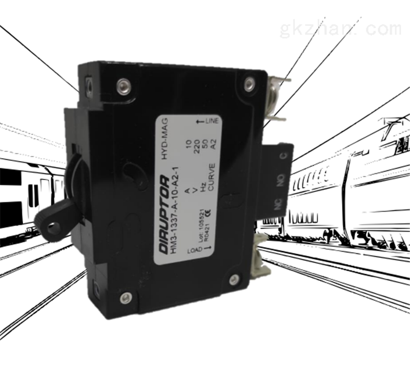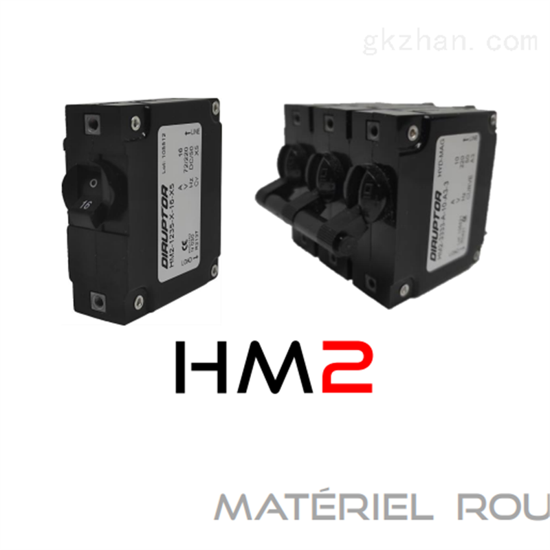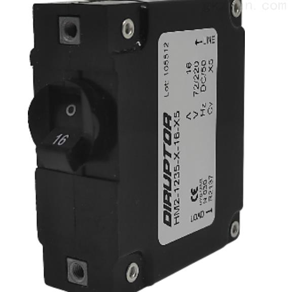 DIRUPTOR单极液压电磁断路器HM2该单极液压电磁断路器符合EN 60934标准,并符合NF F 62-001标准(铁路机车车辆)。额定电流范围从 1 安培到 50 安培不等。用于直流电 (90VDC) 或交流电 (AC)(高达 424 伏 50/60 赫兹)。