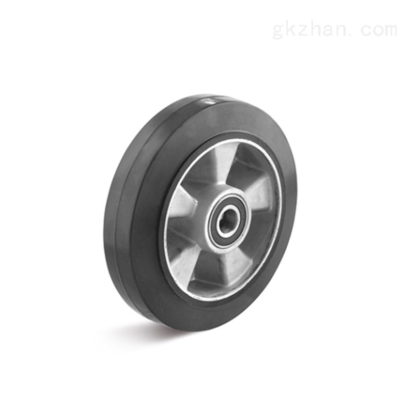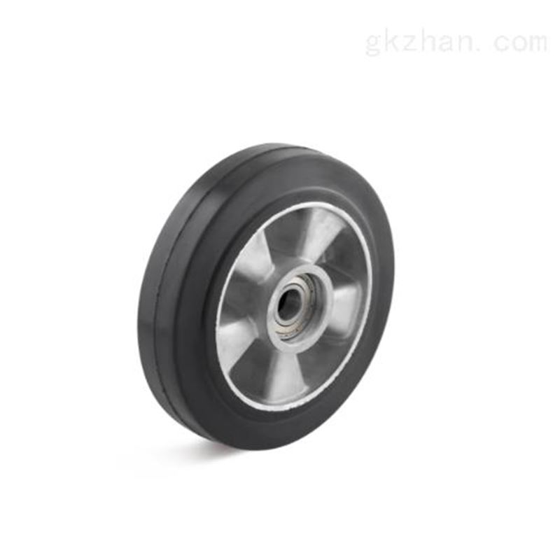 轮心由压铸铝制成,带滚珠轴承胎面,由弹性实心橡胶制成,黑色,约65° 邵氏 A. 坚固和抗震的设计,以及减振特性,确保了低噪音运行。