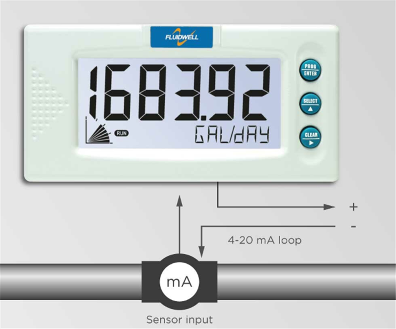 fluidwell多用途指示器D090,D090-A-PL 是一款经济型 DIN 面板安装、回路供电的多用途指示器,具有 26mm (1“) 大数字,可显示实际过程值、范围和回路电流。只需通过阿尔法数值配置菜单即可选择要显示的测量单位。