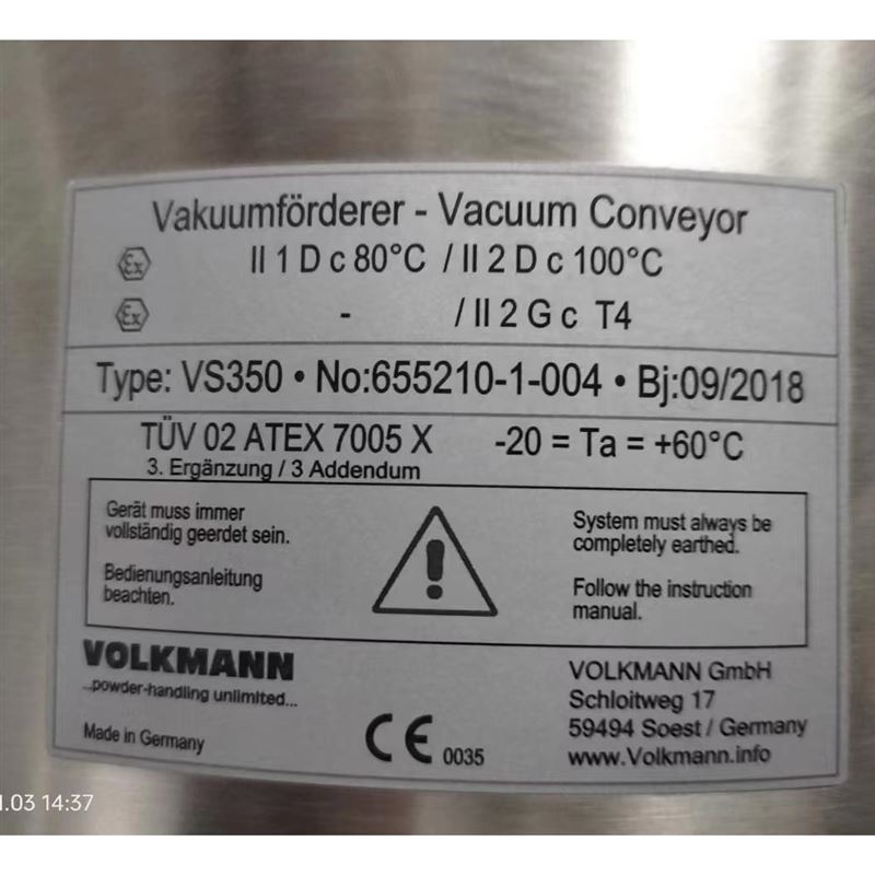 2026-03-03 Volkmann食品和化工真空输送机VS350,多功能Volkmann VS系列气动真空输送机提供安全卫生的粉末处理。它们在整个食品和化工行业中用于粉末、粉尘、颗粒材料和小部件的转移。即使是铣削产生的小金属屑也可以被吸出和输送,而不会对输送机造成磨损。
