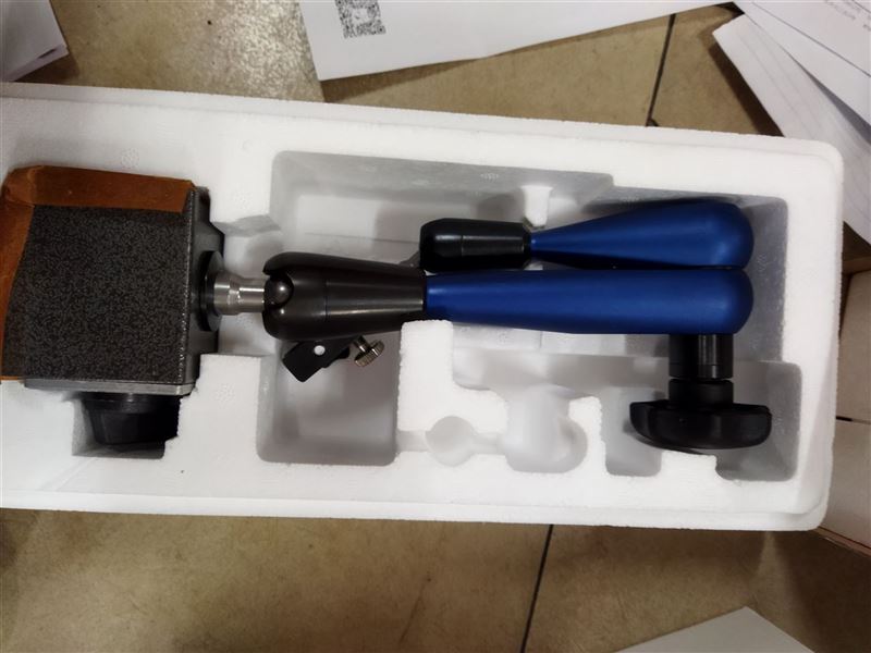 6、HG液压磁性表座,把星星把手拧回支架上,试着夹住它。