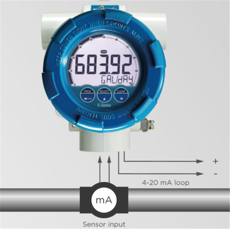 E490 接受来自各种过程仪表的 4 - 20mA 输入信号,包括流量(线性或平方根)、液位、压力和温度变送器。