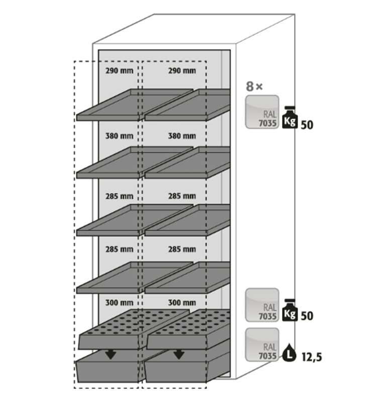 asecos安全柜V90.196.081.VDAC:0012,带电子垂直抽屉的安全柜,使用起来非常方便,可从两侧取用所有储存的容
