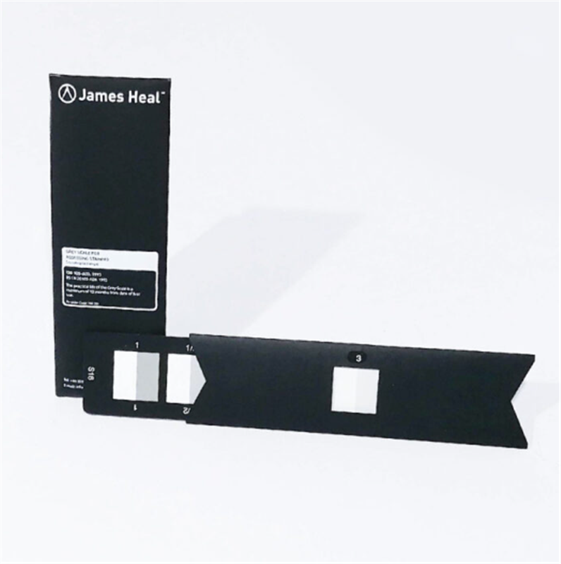 James Heal灰度试纸766-201用于评估染色,染色量表由 9 对灰色和白色色片组成,从 1 级到 5 级(有四个半级)。