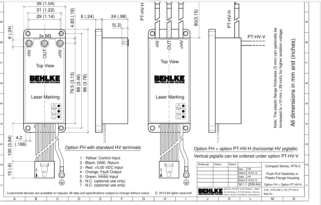 BEHLKE 推拉式开关具有 上升和下降时间。如果您的应用程序不需要完整的 开关速度我们建议您使用限速 选项 S-TT (上升和下降时间慢约50%) 与输入低通滤波器选项 LP 组合使用。 这些选项有助于最大限度地减少典型的高频困难 快速高压脉冲电路(例如自振荡或自振荡 re-triggering) 并总体上简化 EMC 设计。