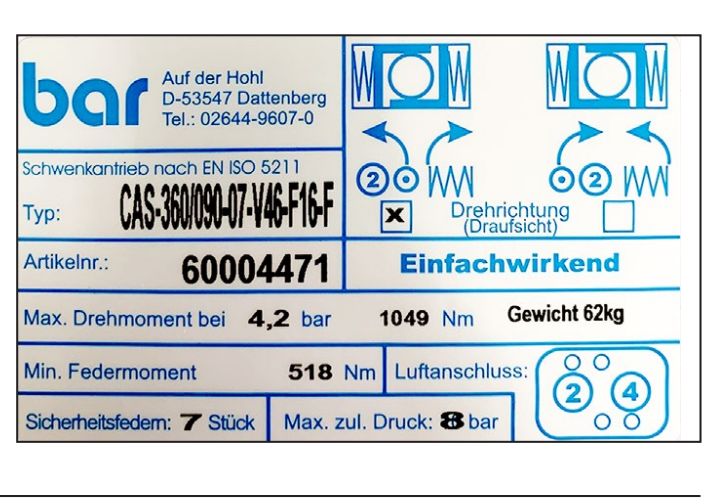 Actubar气动执行器技术参数