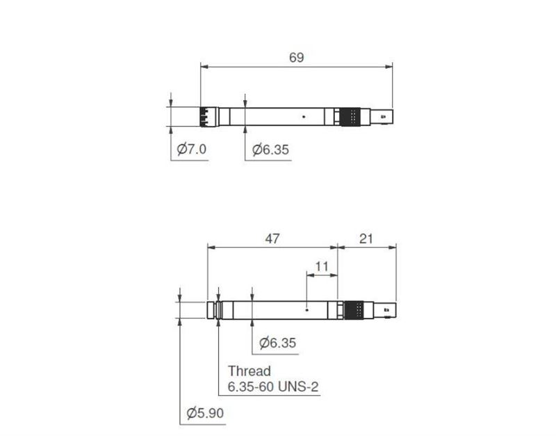 麦克风组端接有 5 针 LEMO 迷你连接器。带有各种类型和长度的 LEMO 连接器的电缆有标准长度和定制长度可供选择。